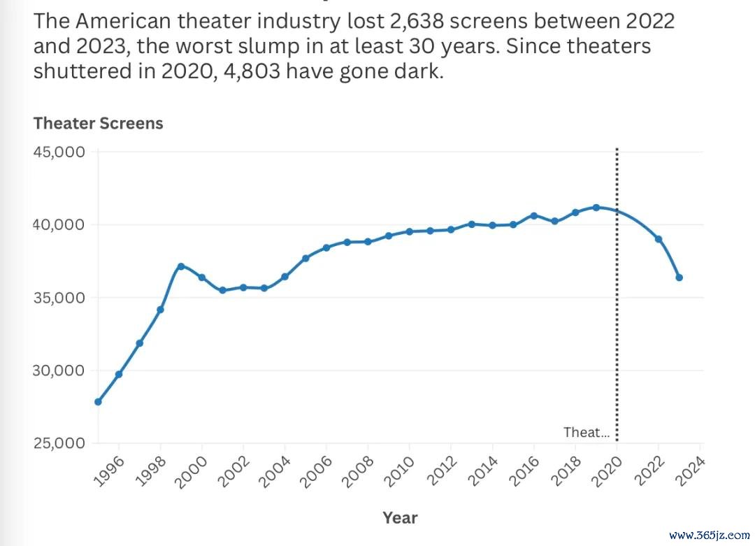 △2022年至2023年间,美国影院损失了2638块银幕,这个趋势还在延续。