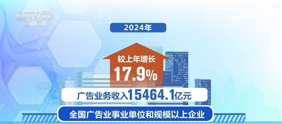 市场监管总局介绍,2024年,全国广告业事业单位和规模以上企业的广告业务收入15464.1亿元,较上年增长17.9%,产业规模稳步扩张。